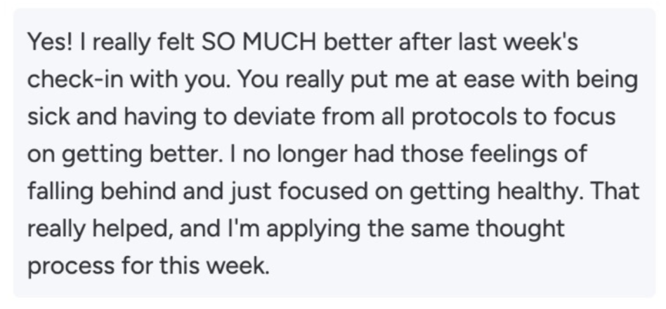 Learning to navigate weekends with intention. Rachael focused on what was in her control, adjusting her schedule, prioritizing key habits, and carrying those habits into her weekends. That shift didn’t just change her body; it gave her the consistency and confidence she’d been missing for years.